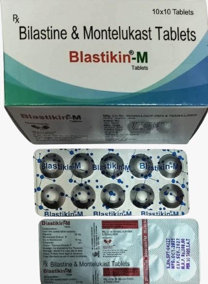 Blastinkin-M Tablets are a combination medicine containing Bilastine and Montelukast, used for the treatment of allergic conditions. This combination helps relieve symptoms such as sneezing, runny nose, nasal congestion, itching, and watery eyes.