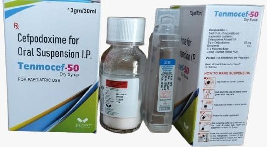 Tenmocef-50 Dry Syrup is an antibiotic medicine containing Cefpodoxime Proxetil, used to treat a variety of bacterial infections. It belongs to the cephalosporin group of antibiotics and works by stopping the growth of bacteria.